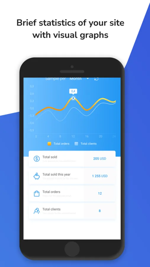 - Quick overviews of sales by period and visual graphs of statistics,