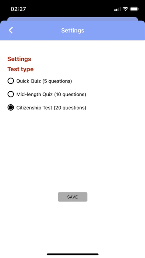 - A full test. As with the official citizenship test, where 20 questions are asked and 15 of which must be answered correctly in order to pass the test.