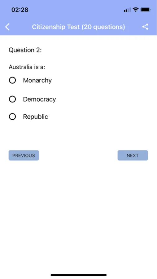 The Australian Citizenship Test App creates sample exams for the citizenship test of Australia. Questions will be randomly selected from a database containing more than 650 questions, and the generated sample tests allow you to practise authentic multiple choice exams.