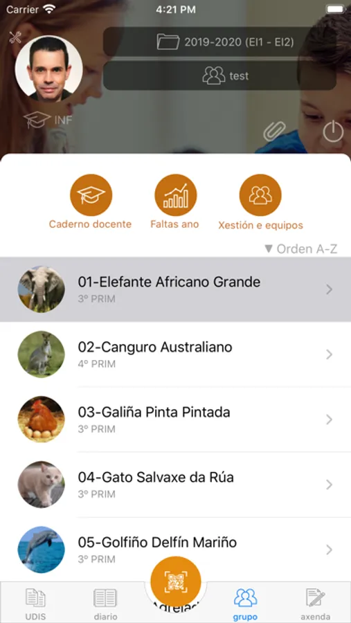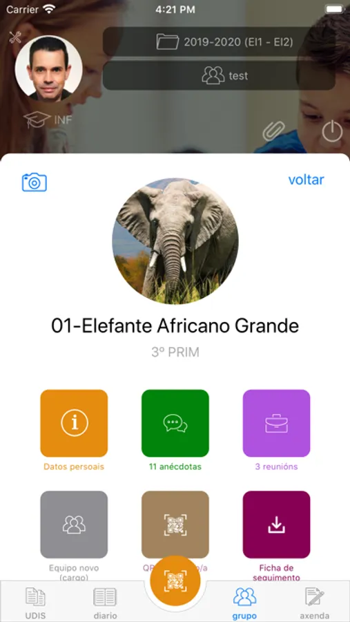 - Cambia a fotografía de cada alumno usando a cámara do dispositivo ou unha imaxe da galería.
