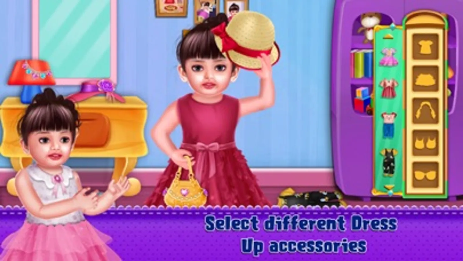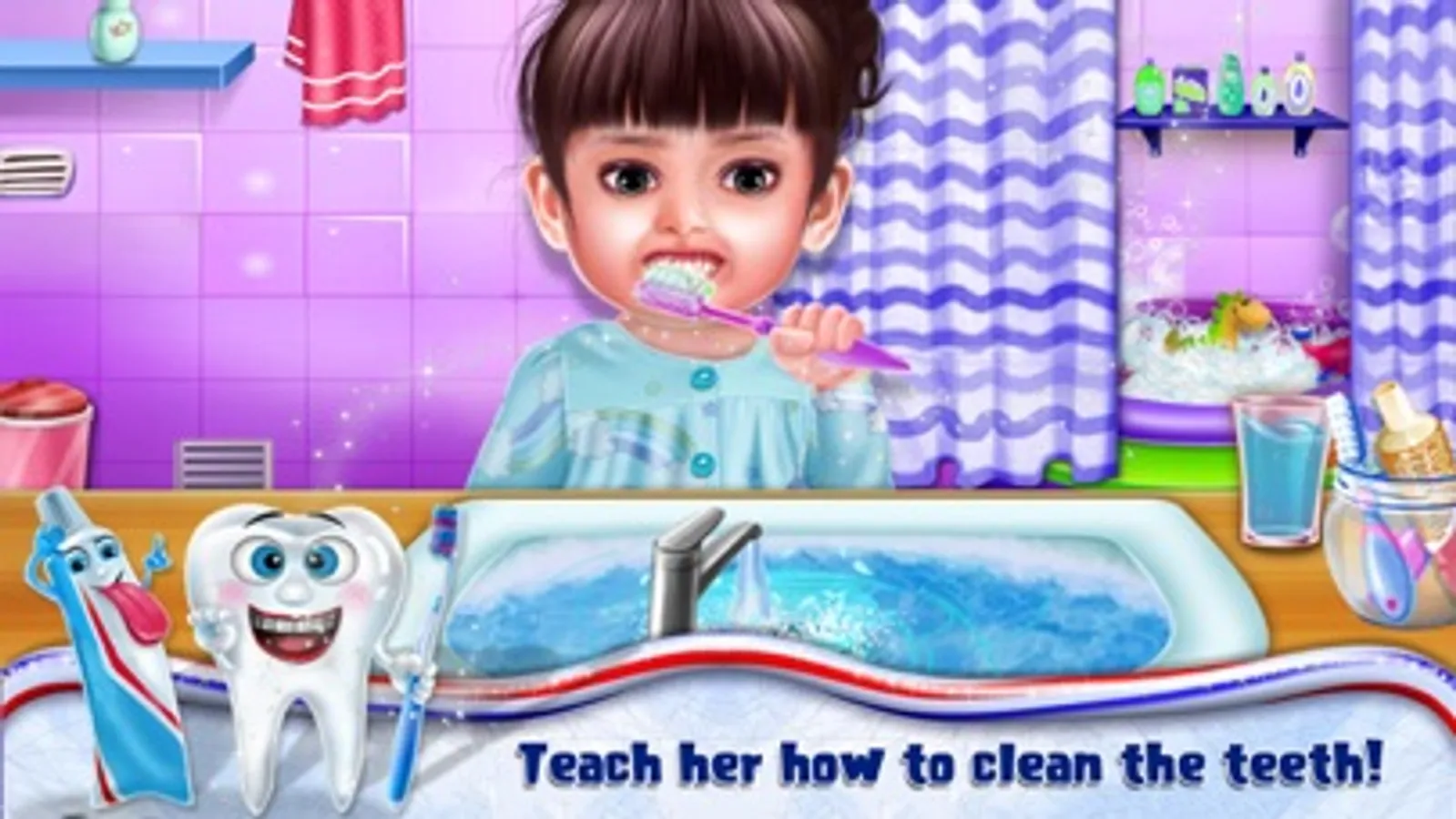 Spend a day with baby Aadhya and help her to perform all the activities she does during the whole day. Start the day by ringing the alarm clock and then help her to perform various early morning activities like brushing teeth, giving a bath, dressing up and much more. While going to school, don't forget to cross the road only when there's a green light. At school help baby Aadhya to learn various colors, alphabet, numbers and names of different animals. There's also a mathematical view where you need to help Aadhya to perform various mathematical activities. After coming back Aadhya wants to go to the park, but the park is very dirty so she needs your help to clean it up and then play various games at the park. After the long day Aadhya is tired, so help her to fall asleep.