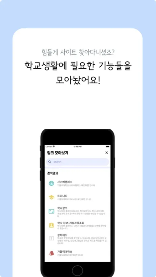 공지사항 보기, 링크 모아보기, 개발자 문의 서비스 등