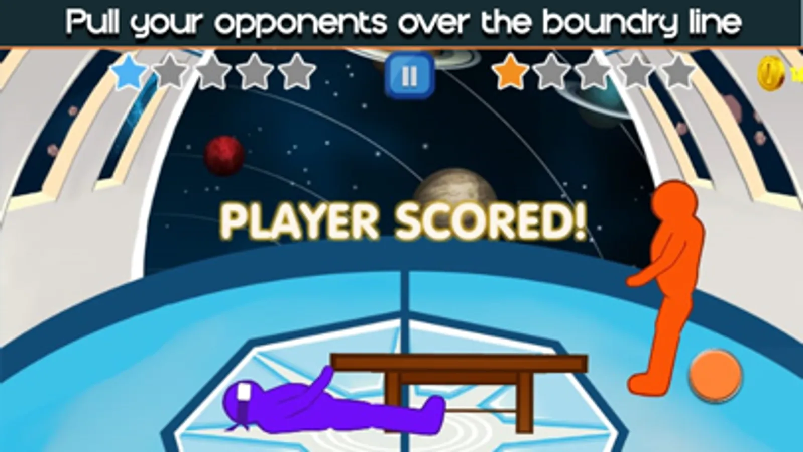 Tug the Table is a simple funny competitive game. Yes, though it looks funny, it's really a competitive game...Blue and red colors are the classical character pairing from a very early time. There are two little people in blue and red in color. The only things you need to do are handling one of them, and pull another one over the white line.