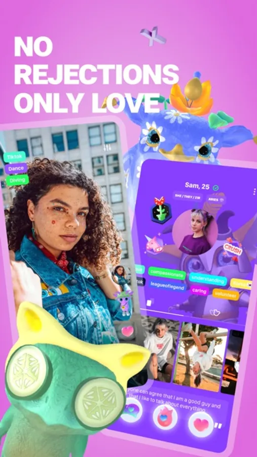 This inclusive dating app for open-minded people left behind the suffocating gender-age-sexuality-body type filters for a gamified experience of getting to know others through their personalities.