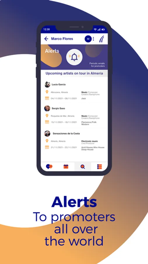 With ArtistsOnTheWay, after creating a small portfolio, artists and technical specialists complete their schedules, indicating dates and places, keeping them constantly updated with their location and availability.