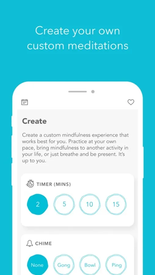 - A Create feature lets you choose the duration and soundscape for a custom practice