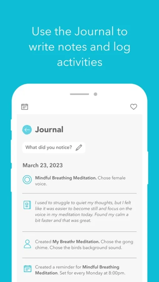 - A Journal function to add notes on the feelings and thoughts that come up for you