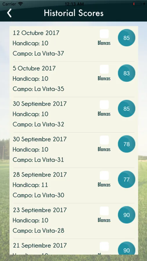 Aplicación para manejo de scores y cálculo de handicap por partida.