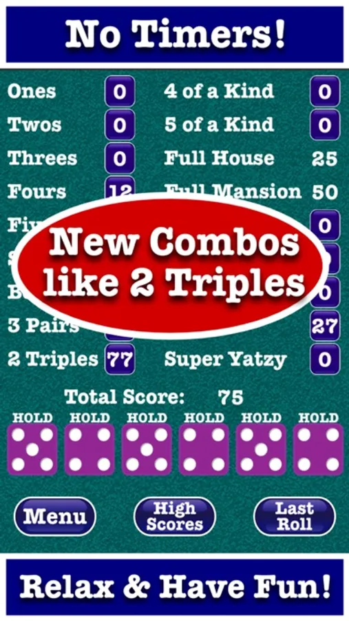 Make new combos like "2 Triples" and a "6 Straight" using all dice!