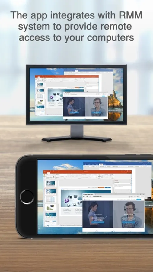 Launch remote control sessions from your RMM console on an iOS device. Refer to your RMM for setup and usage instructions.