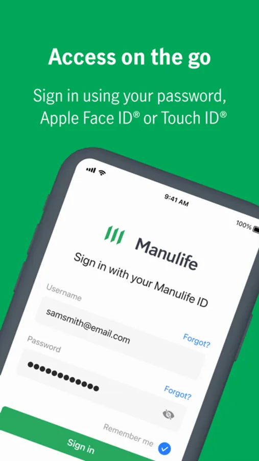 The fresh, intuitive design gives you access to your Manulife benefits and retirement plans quickly and easily while on the go. For even easier access you can use Apple Touch ID® and Face ID®.