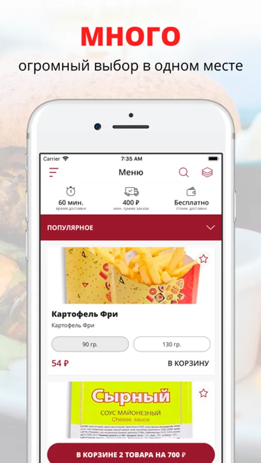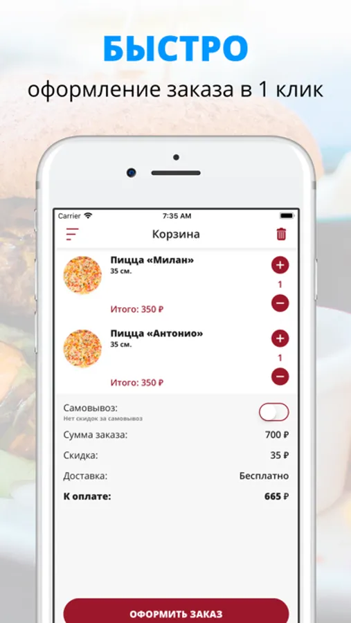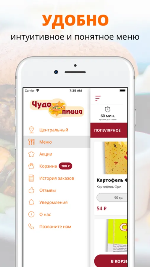 Бесплатное мобильное приложение доставки от пиццерии "Чудопицца":