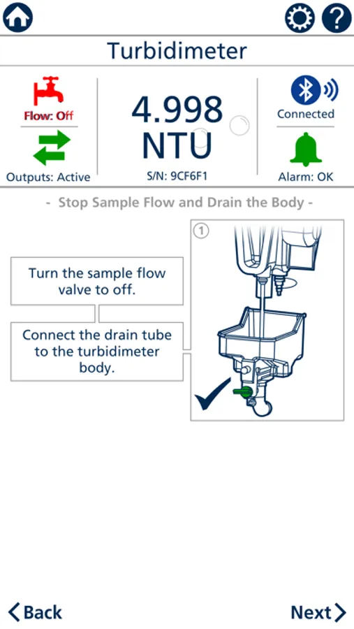 • Quick and easy access to “pro-tips.” Anywhere in the app that the information graphic appears, be sure to click. These pages contain additional information about the instrument and turbidity measurements.