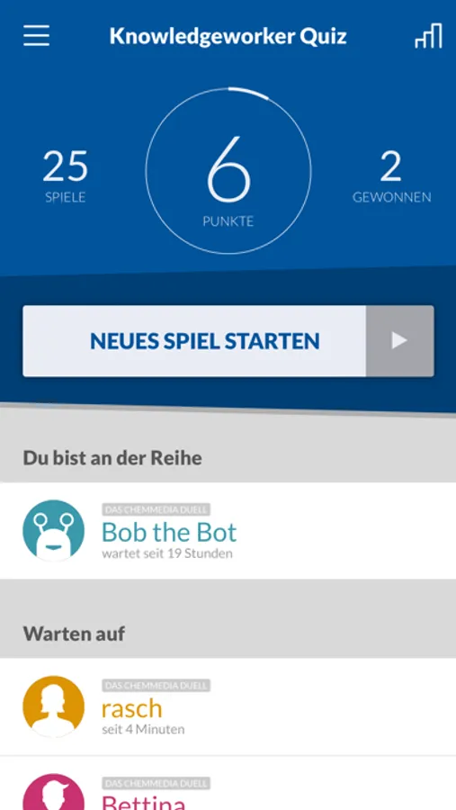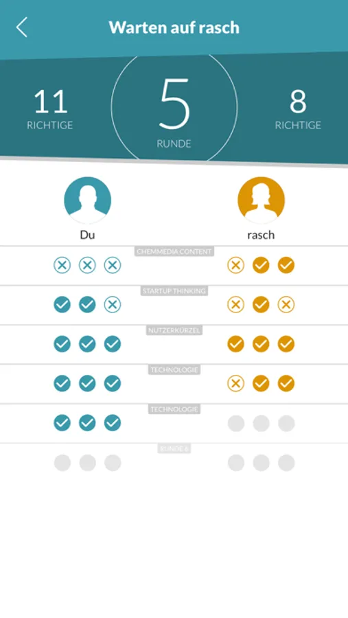 Stelle dich einem Freund, einem Kollegen, deinem Vorgesetzten oder einem zufälligen Gegner im Duell. Wähle dein Thema und das Duell beginnt: Wer kann die meisten Fragen richtig beantworten? Wer wird am Ende der Sieger sein?