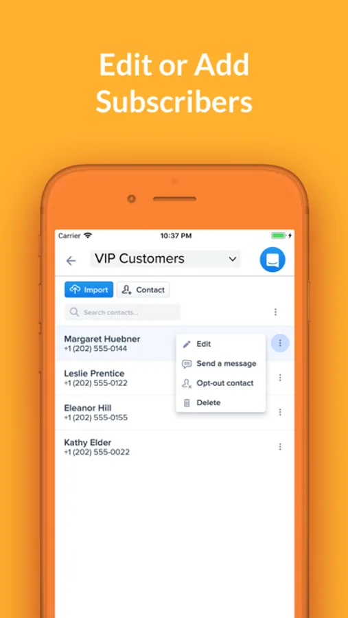 • Manage your list of subscribers and add contacts
