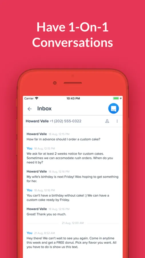 • Text back individual subscribers right away in an intuitive, threaded inbox
