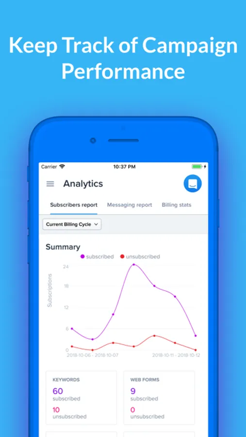 • Visualize click-through rates, subscriber growth and number of messages sent
