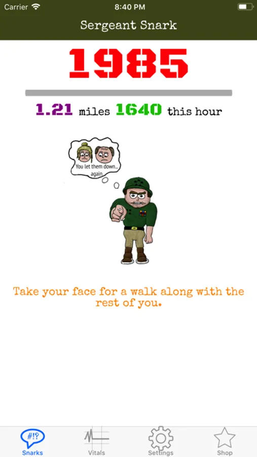 This is for those who like some snarky, quick jab comedy. Don't expect Sergeant Snark to go easy on you. He made us do many steps just to get this app ready, but our face hurts with laughter.