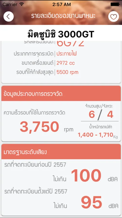 แอพพลิเคชั่นนี้จะเป็นเหมือนคลังข้อมูลที่รวบรวมข้อมูลของรถประเภทต่าง ๆ รุ่นต่าง ๆ และแสดงความเร็วรอบที่ให้กำลังสูงสุด, ความเร็วรอบในการตรวจวัด, น้ำหนักรถเปล่า และอื่น ๆ ที่เกี่ยวข้อง เพื่อจะได้เป็นมาตรฐานให้กับประชาชน, ตรอ. และเจ้าหน้าที่ของกรมควบคุมมลพิษในการตรวจมลพิษทางเสียงจากยานพาหนะ