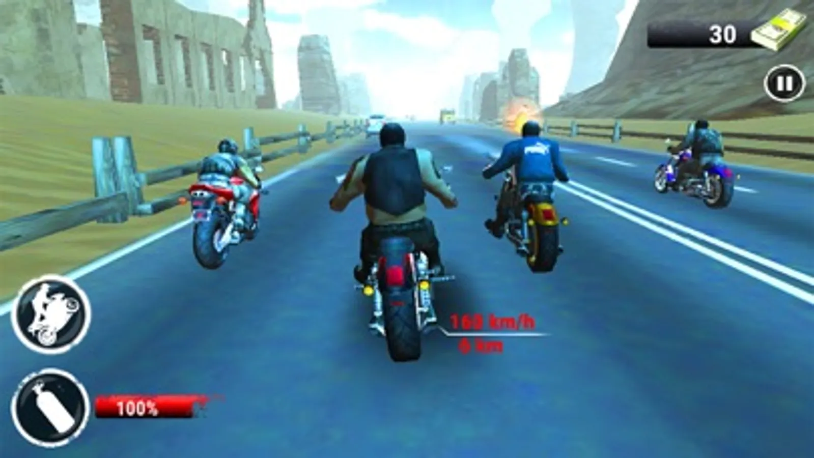 The fascinating roadway auto bike fight is superior amidst of other bike races in terms of its brutal clashes with other bike runners and the systematic survival approach from being attacked by bloody riders. Make your plan how to run on track, chase your winning point and pull down your rivals by punches and kicking. The sound and threat of expected road accident will remind you a genuine racing competition.