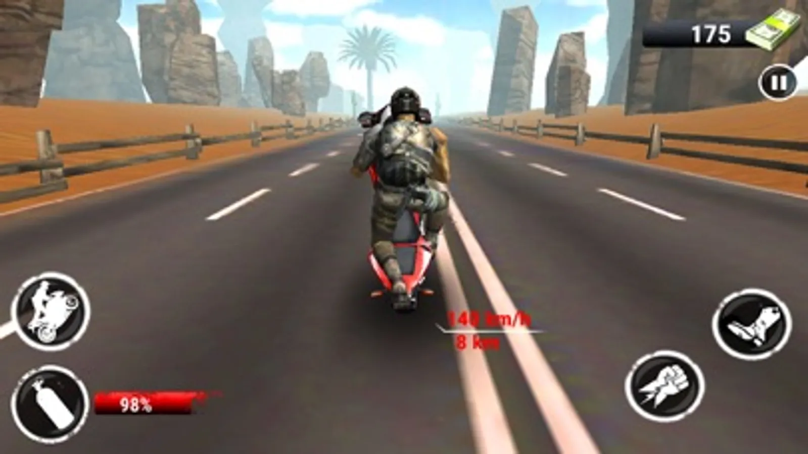 Motor cycle traffic racing has turmoil of quick decisions at every step that give you no chance freedo....... kill or being killed is the moto. The game is an actual consumer of man potential and based on the sustaining capacity that obviously race high with the survival urge. Kick the super speed bike for ultra traffic rider drive and armed you with the supplementary weapons for knock over round.