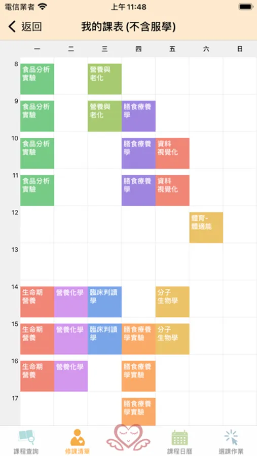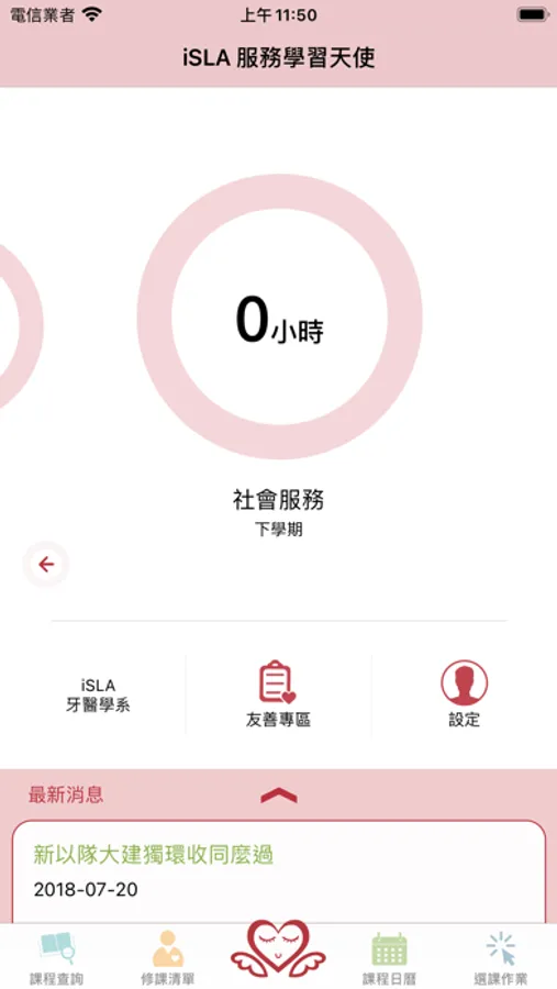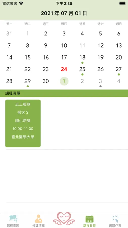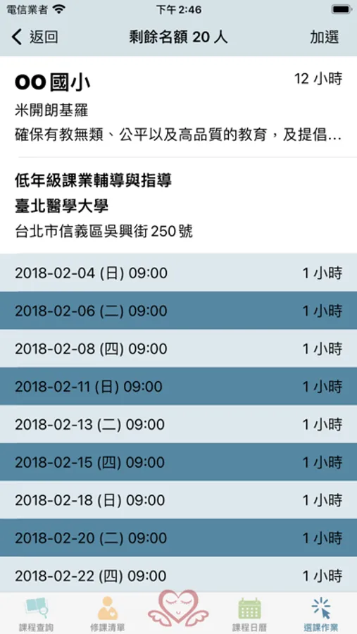 2.修課清單:查詢使用者以加選的服務學習課程。