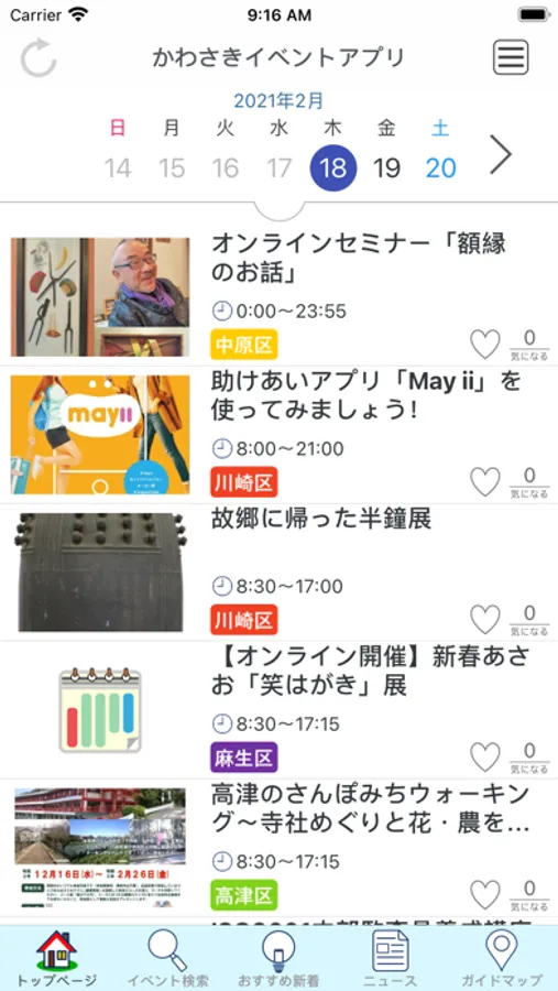 気になるイベントは、お気に入り登録することでリマインド通知が届きます。