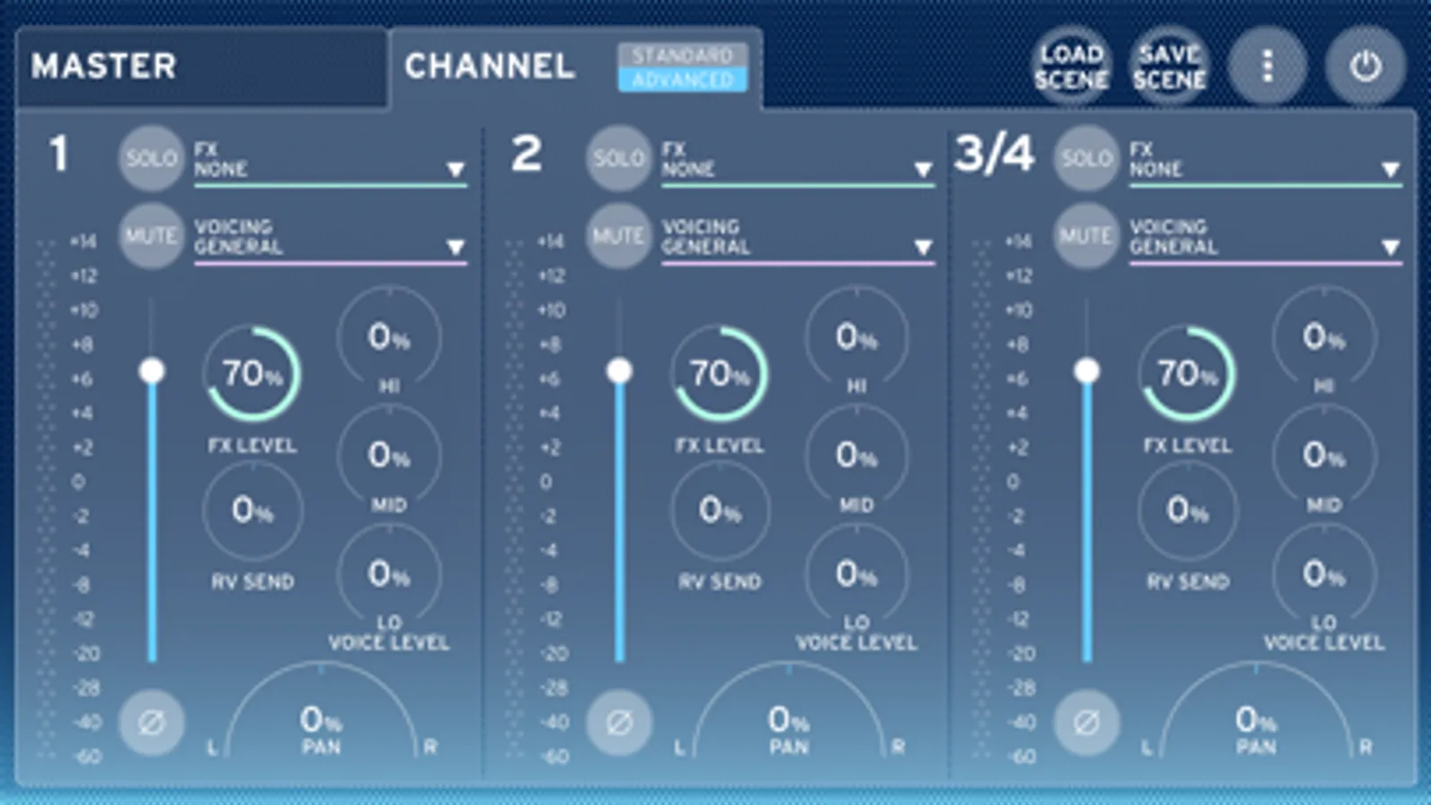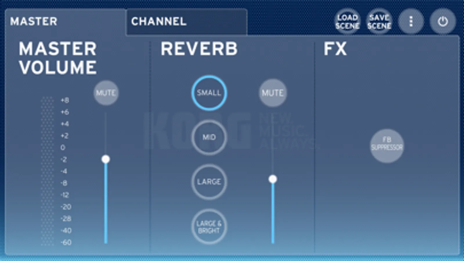 * "SAVE/LOAD" scenes recalls all settings immediately.