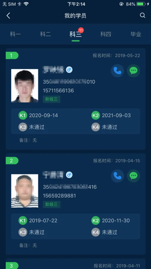 1、我的学员:驾校给您分配学员后,您可以在我的学员里面查看到学员的详细信息,包括报名时间,考试成绩和学习进度和教学日志