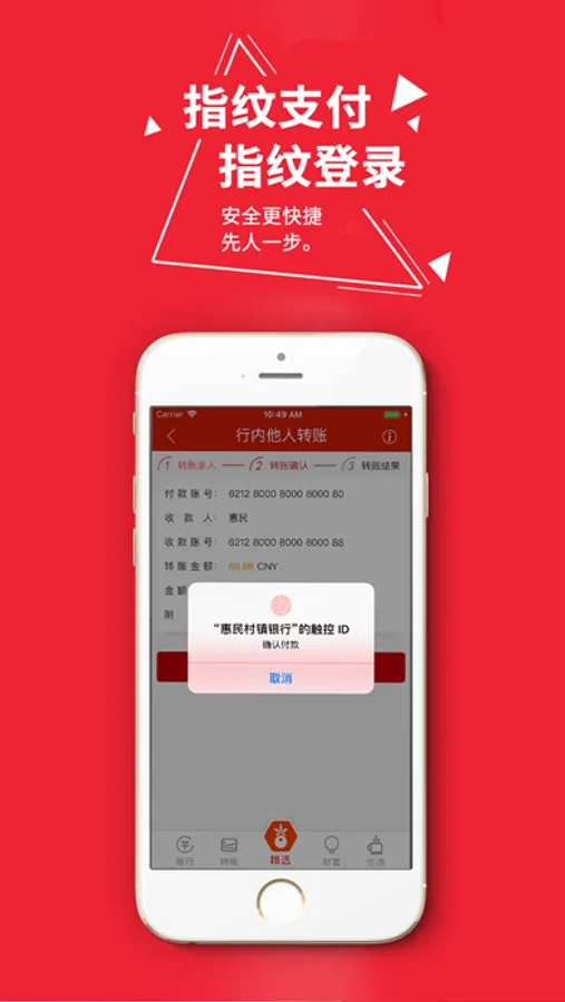 惠民村镇手机银行采用多重密码保护机制,加以手机动态密码双重认证,保障您的交易资金安全。时尚动感的界面视觉、个性易用的功能布局、全新流畅的用户体验,助您移动金融和移动生活更时尚精彩。
