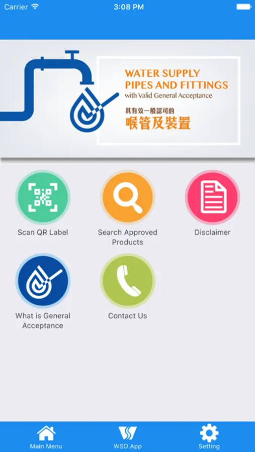 Users can make use of the ""WSD GA Product Directory"" to search plumbing products with WSD's General Acceptance by entering category, brand or model number. Users can also obtain details of plumbing products by scanning the QR code printed on the label by smartphone if the product has joined the Voluntary Labeling Scheme for Approved Plumbing Products.