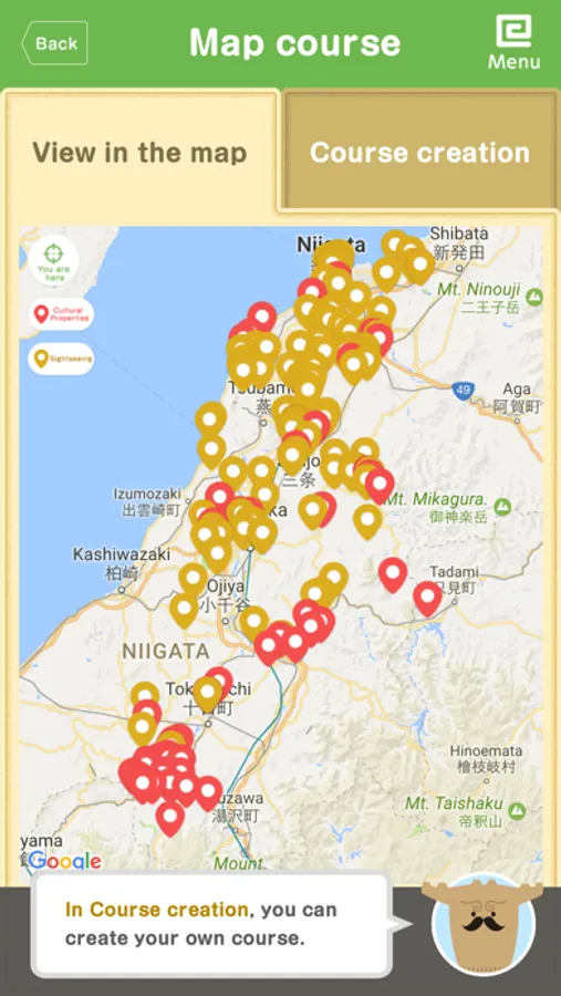 ・ユーザー自身で展示施設を選択し、オリジナルの見学コースを作成することができます。作成したコースはGoogleMapの機能を使って回ることが可能です。