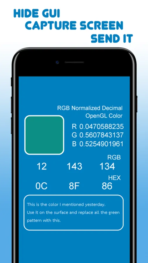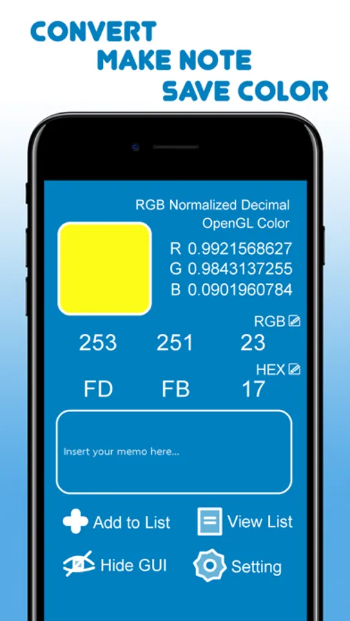 • Convert your color into RGB, HEX and OpenGL (RGB Normalized Decimal to 0-1).