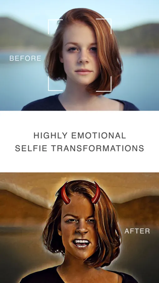 Powered by AI, it can recognize emotion and style your selfie accordingly. Stop for a moment and make a selfie: (Bang) you're a devil burning with anger; (Bang) you're an angel in a rainbow sky; (Bang) a ghost completely lost in the dark woods.