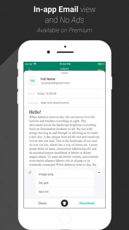 ● Receive multiple or single attachment(s) which can be downloaded from email