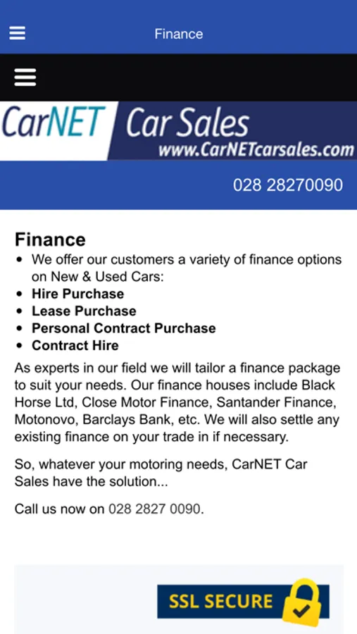 At CarNET we also offer you a choice of finance solutions. As an Approved Black Horse Motor Finance Dealer we are best placed to provide you with finance at the most competitive rates.