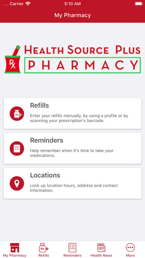 The Health Source Plus app allows you and your family to securely communicate with your local pharmacy. Refill your prescriptions with one click, get refill reminders, get discounts at your local pharmacy, get savings on brand drugs and access Pharmacist written pages that help you understand your condition or medications.