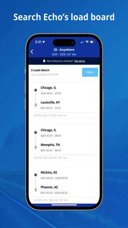Put your load management on cruise control with EchoDrive. Search Echo’s available loads board, view load details in one place, and upload documents directly into the app. EchoDrive places everything you need at your fingertips.