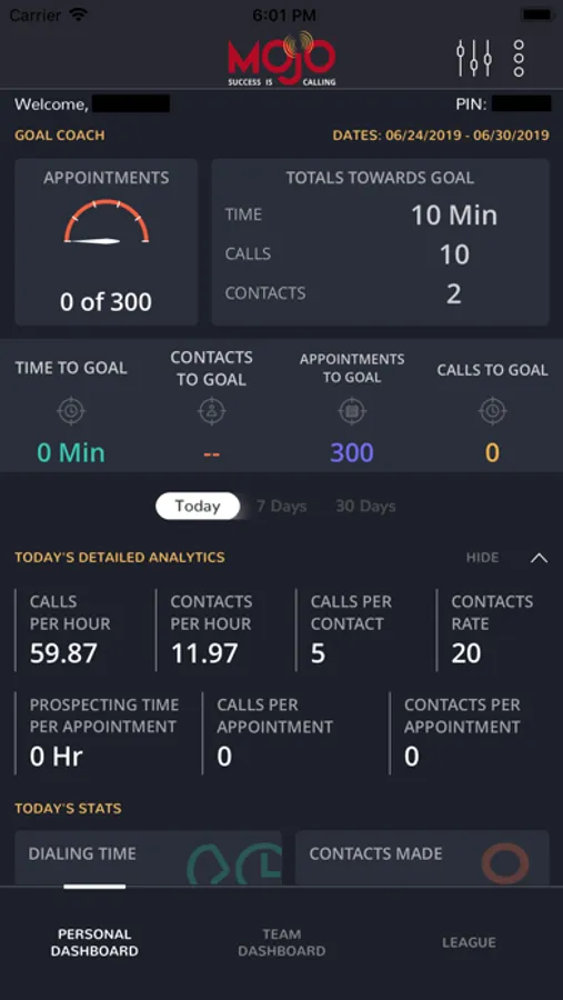 Once your goals are set, simply update the app with your prospecting progress every time you hit the phones. The app will automatically compare your current trajectory against your goals and give you an output of whether you are on or off track.