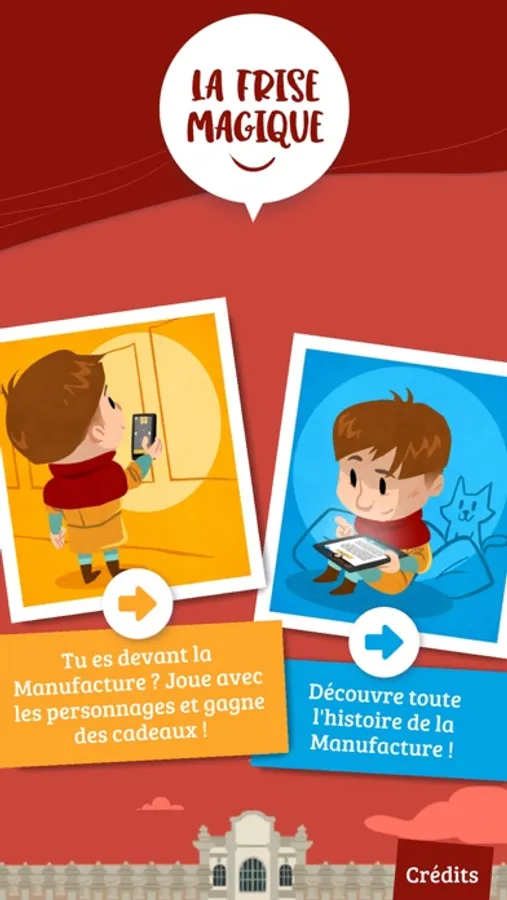 La Frise Magique est une application qui te permet de découvrir l'histoire des manufactures, en parcourant la frise chronologique installée devant la Manufacture des Gobelins, à Paris. Quelle Histoire te propose une expérience numérique pour enrichir ta visite : vidéos, images et jeux accessibles via une technologie simple et immersive, la réalité augmentée.