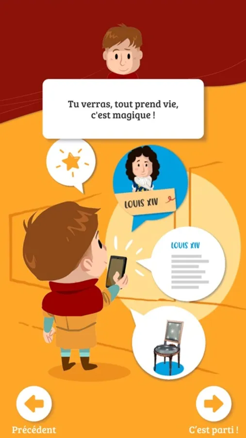 Tu peux ainsi découvrir l’histoire du Mobilier national et de la Manufacture des Gobelins à travers une dizaine de tableaux illustrés et par l’intermédiaire de quelques personnages marquants : Henri IV, Louis XIV, Marie-Antoinette, Napoléon…