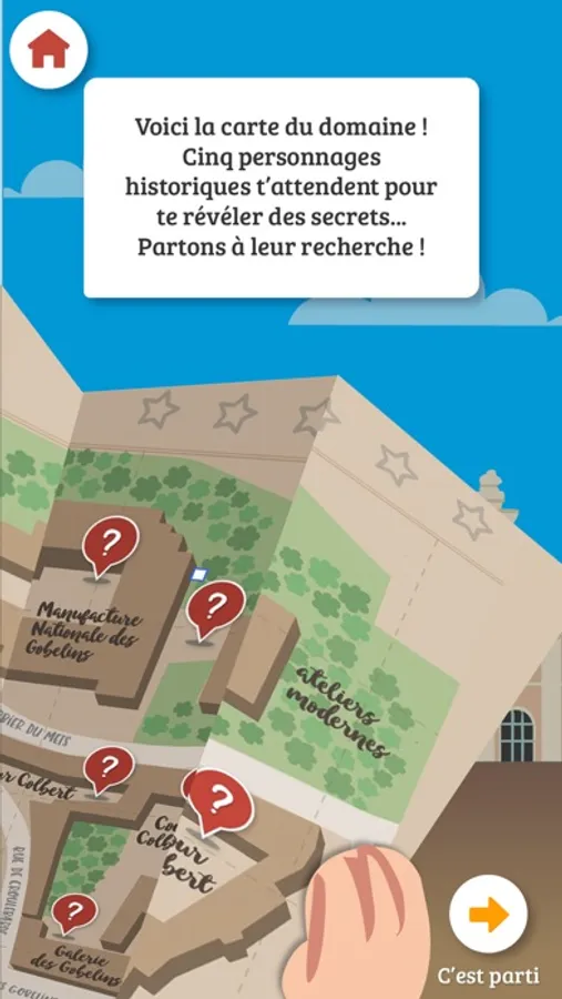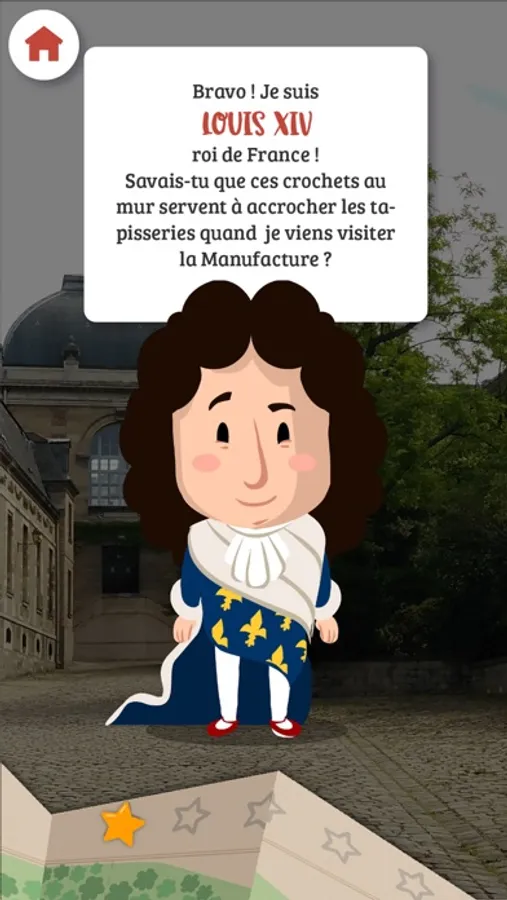 - devant la Manufacture des Gobelins (Paris 13ème), en passant ton smartphone devant les personnages… Tu verras, ils s'animent en réalité augmentée et te racontent l’histoire du Mobilier national et de la Manufacture des Gobelins !