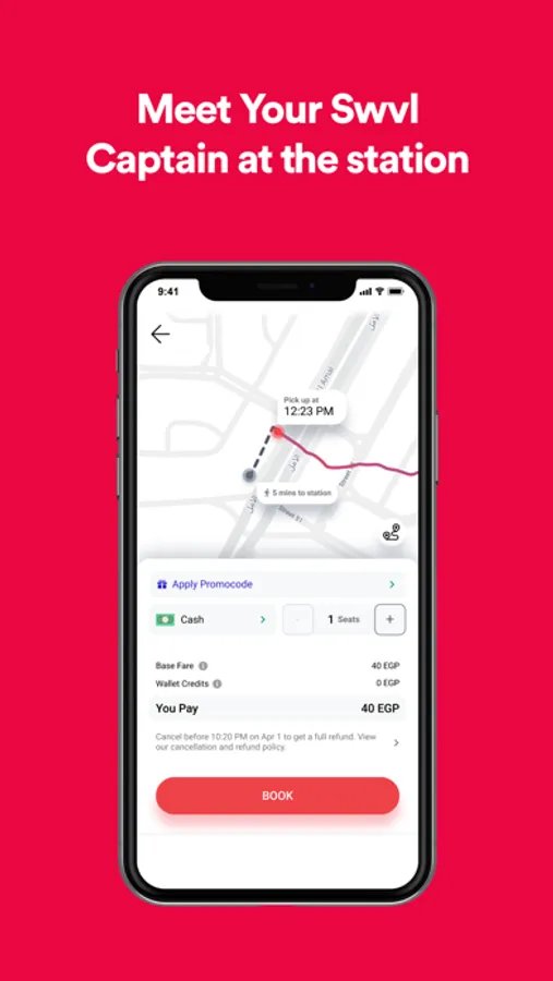 The Swvl app is super easy to use. All you need to do is turn on location settings and enter your destination, the app will show you all available stations and timings. Once you pick your perfect ride, Swvl will show you a google maps link with directions to go meet your captain at your chosen station.