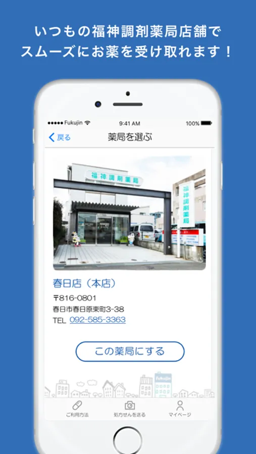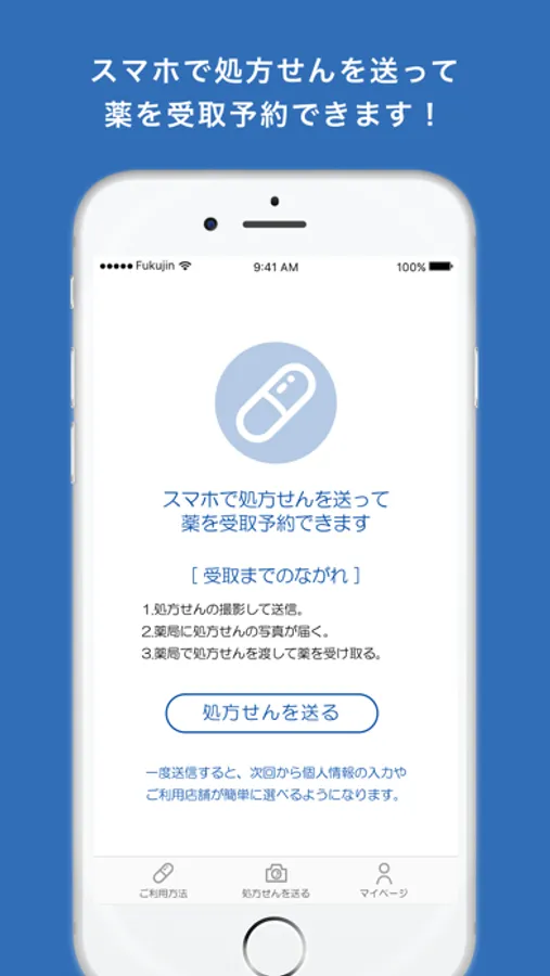 福神調剤薬局の店舗でお薬の受取ができるアプリです。