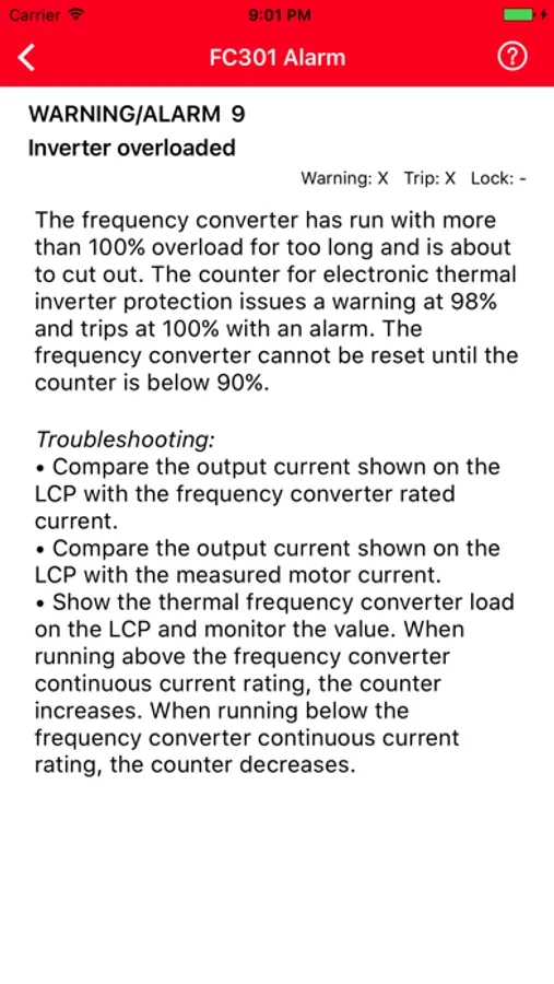 The "dDrives - VFD help" app provides quick access to alarm descriptions of Danfoss VLT drives. In a second you get a full alarm description, troubleshooting guide and even a link to the latest user manual. App greatly helps by commissioning and service giving you the necessary information when you need it and where you need it.