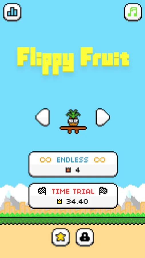 Flip your way through an endless adventure with 5 different fruity characters. Engage yourself in 2 different game modes.