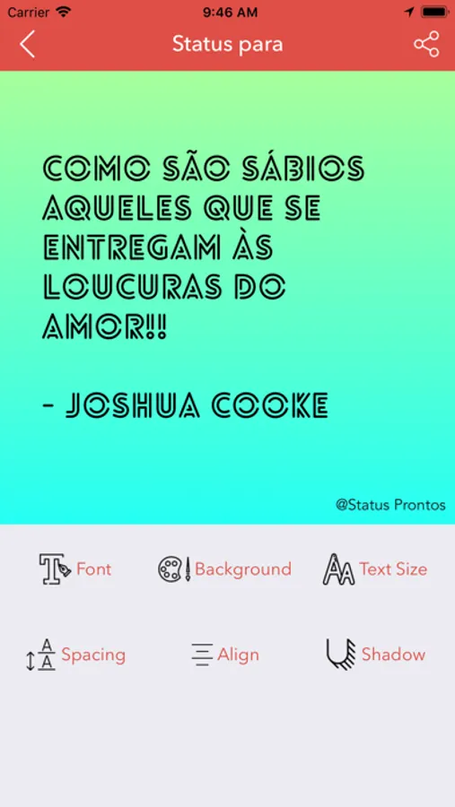 ■ With tons customizing options such as background colors, fonts, and styles, you can ensure that your quote is entirely and uniquely your own. (Crie uma foto de citações inspiradoras com toneladas de opções personalizadas, como cores de fundo, fontes e estilos, você pode garantir que sua cotação seja inteira e UNIQUELEMENT SUA PRÓPRIA.)