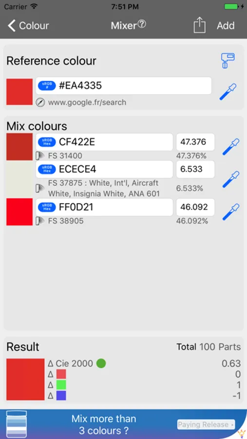 * Mix colours (up to 3), including the unique and performant auto-mix feature that allows to compute the best possible colour mixes
