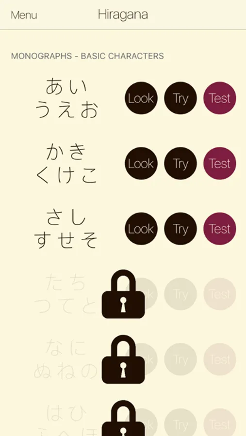 - Simple step-by-step approach, breaking the characters into bite-size groups.