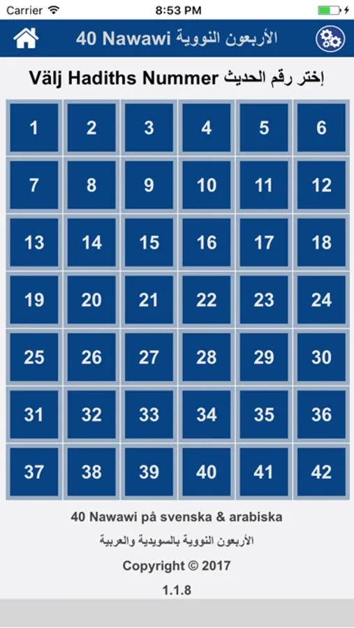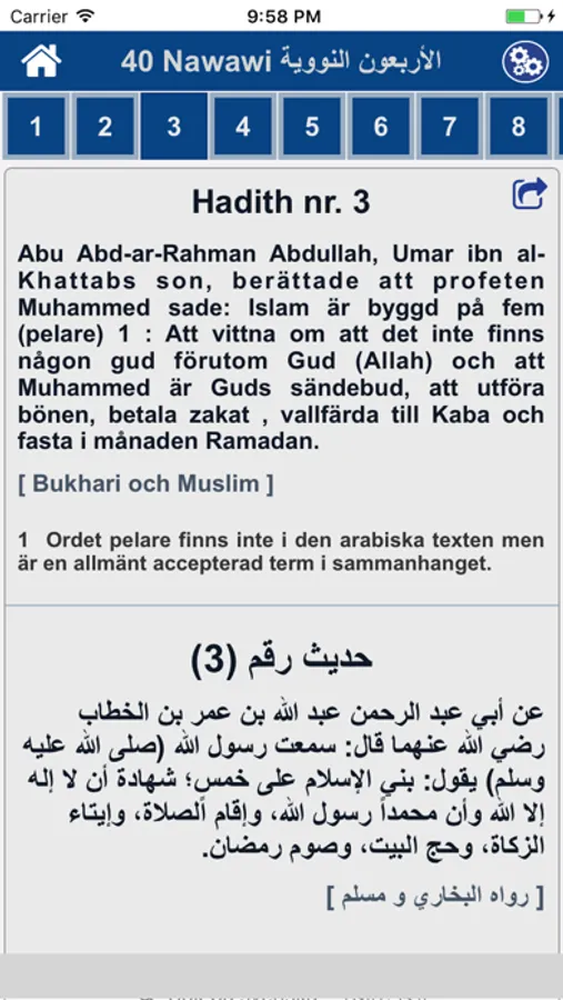 Det är första app på arabiska och svenska för 40 Nawawi Hadith.